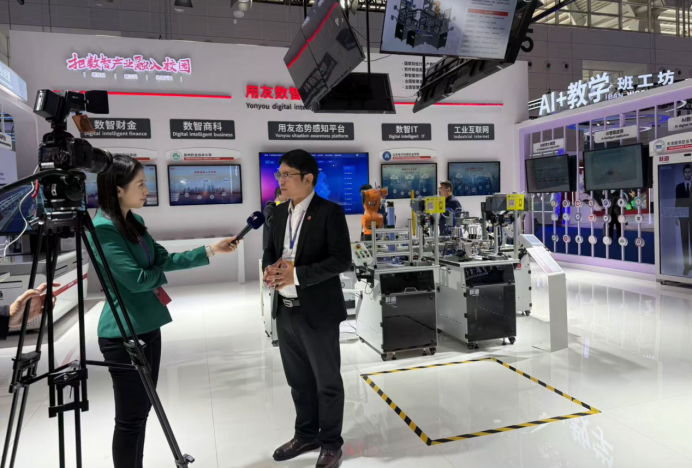 用友新道展区以前沿的教学产品展示,领先的数智人才培养解决方案受到了参观嘉宾的一致好评和媒体的广泛关注。中央电视台、中国教育电视台、新华社、天津卫视、津云融媒体等媒体对用友新道产品和方案进行宣传报道。