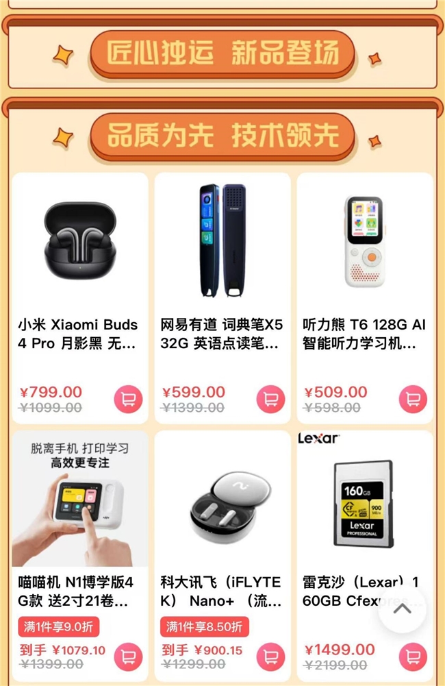 在“超值乐购潮——接棒双食衣 好物低价”活动中,i百联特别推出了多个领域的高品质商品,涵盖智能穿戴设备、学习工具、存储设备等。这些产品不仅具有先进的技术和卓越的性能,还经过严格的质量检测,确保每一位消费者都能享受到最佳的使用体验。无论是追求高效学习的学生,还是需要专业设备的摄影师,都能在本次活动中选到满意的商品。