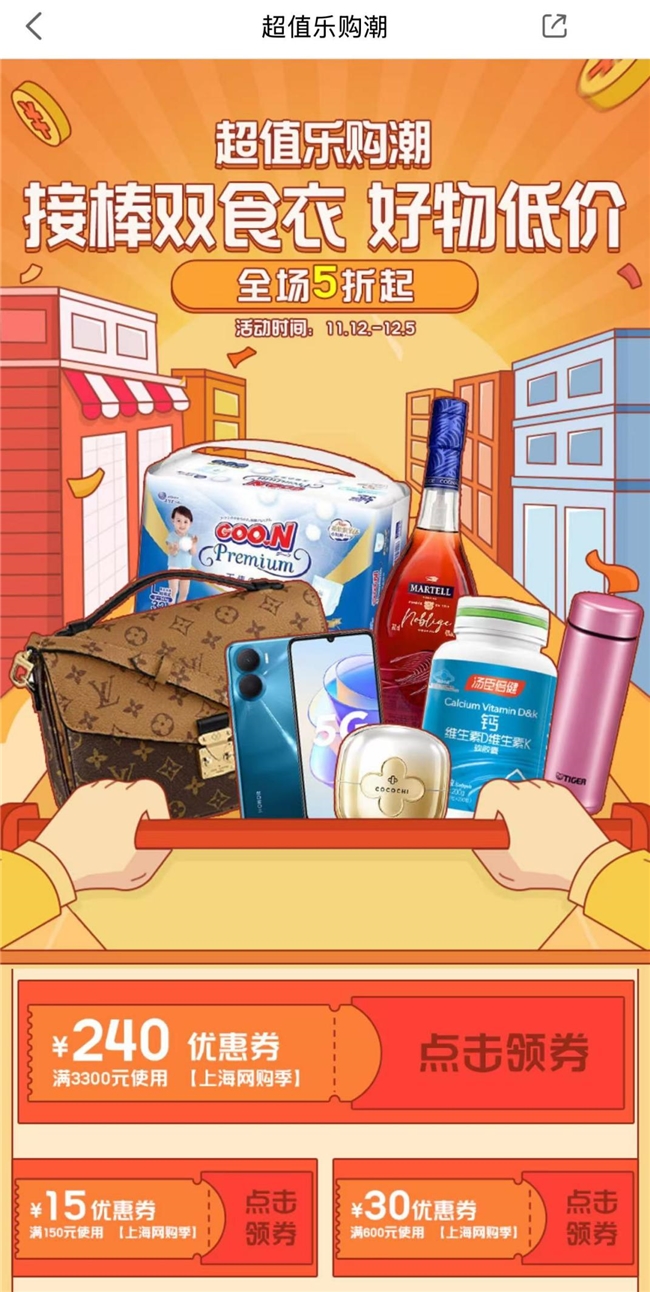 接棒双食衣,i百联电商平台再度发力,于11月12日至12月5日期间,隆重推出“超值乐购潮”活动。该活动不仅完美衔接了双食衣的狂欢氛围,还特别精选了一系列商品,提供直降优惠,全场商品均享受5折起的超值折扣。同时,平台还准备了丰富的满减优惠券,诚邀广大消费者参与。i百联致力于让消费者在享受优质商品的同时,也能享受到实实在在的优惠,共同度过一个愉快又惊喜满满的购物季。