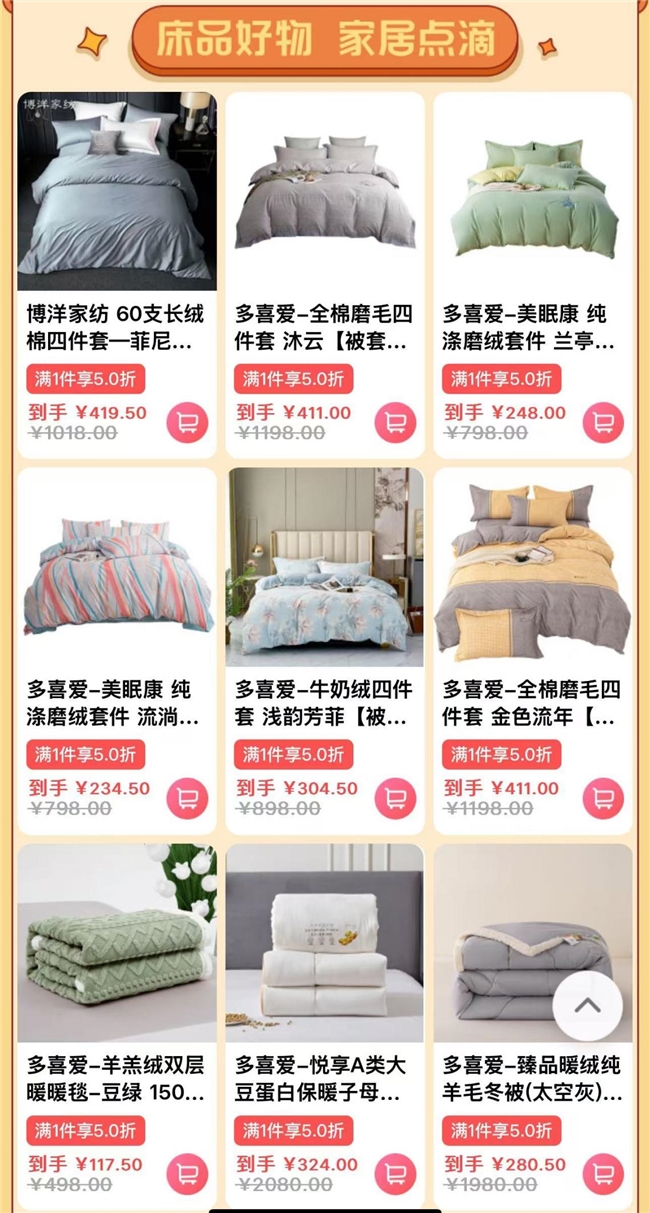 在“床品好物 家居点滴”活动板块,i百联推出了多款高品质的床品和家居用品。从长绒棉四件套到羊羔绒暖毯,从全棉磨毛四件套到大豆蛋白保暖被,这些产品均选用优质材料,设计精美,触感柔软,能够为消费者带来温馨舒适的睡眠体验。