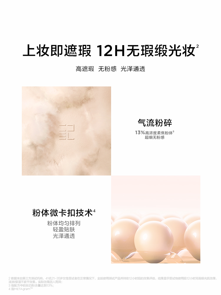 为了让产品在遮瑕、持妆和滋润方面更加出色,完美日记在「小黑镜」气垫中加入了高浓度柔焦粉体和立体缎光因子,并结合锁色黑科技METAgramTM粉体微卡扣技术,成功打造出无粉感遮瑕体系,带来高遮瑕度与轻薄妆效兼具的双重成效。完美日记还采用了全球尖端的双重锁妆膜技术,使「小黑镜」气垫能够快速成膜的同时,还能柔软贴肤,双效保持精致妆容,为消费者带来不紧绷、不卡纹的舒适且长效的美妆体验,轻松解决外出容易出现脱妆、晕妆等问题。