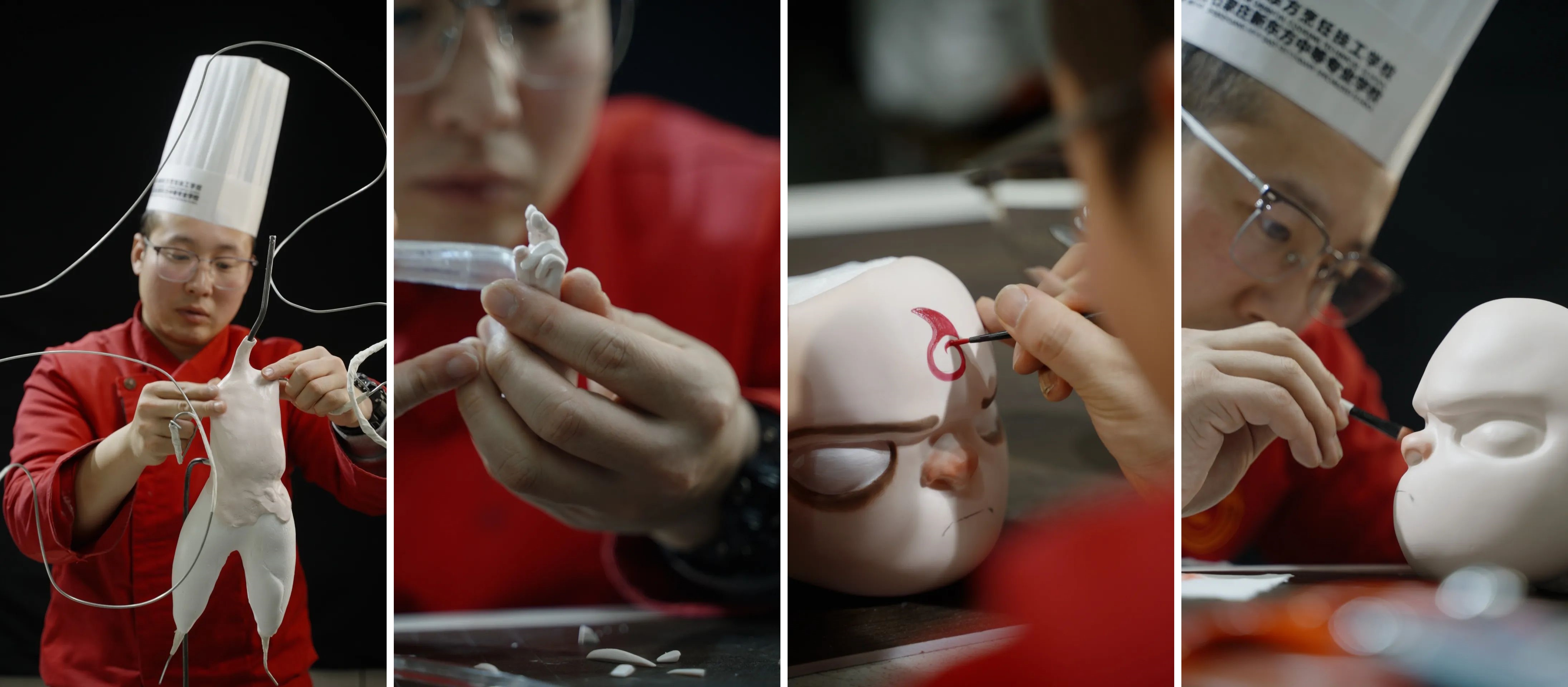 河北新东方作为职业教育的重要阵地,在此次非遗与国漫的跨界融合中发挥了关键作用。学校积极将面塑纳入教学体系,鼓励师生以现代视角重新审视和诠释传统技艺。李贺老师作为面点专业教师,始终致力于探索非遗的年轻化表达。他巧妙地将经典神话角色与热门动漫形象引入面塑创作领域,突破了传统面塑题材的局限;同时,他还积极推动面塑从静态展示向动态创作转变,进一步拓宽了面塑的艺术边界。这种 “非遗 + 创意” 的教学与创作模式,不仅培养了学生对传统文化的自信,更为传统技艺的市场化发展开辟了新的路径。