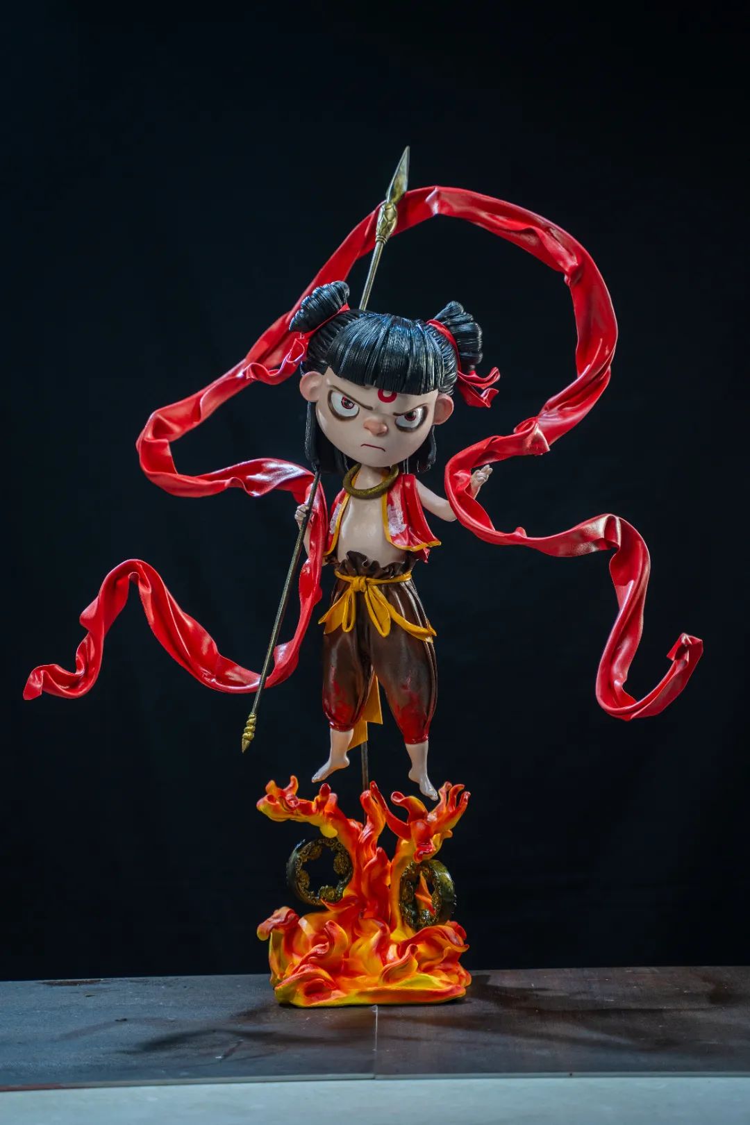 李贺老师的面塑哪吒以电影《哪吒之魔童闹海》中的经典形象为灵感源泉。从第一步揉制面团开始,李贺老师便全神贯注,每一次揉动都为面团赋予了独特的质感。在色彩搭配环节,他精准地参照电影中的色彩基调,精心调配出与哪吒形象高度契合的色彩。而在细节雕琢上,李贺老师的专注与执着令人赞叹,他不放过任何一个细微之处,哪怕是哪吒那根根分明的头发丝,都进行了精细还原。经过长达 3 天的精心雕琢,一个威风凛凛、栩栩如生的面塑哪吒跃然眼前。这一作品的诞生,不仅仅是简单的技艺展示,更是非遗面塑与流行文化深度交融的杰出典范。