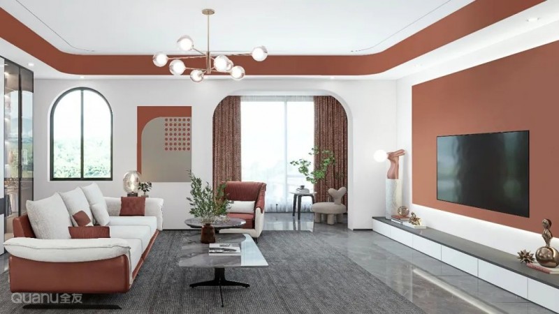 指将电视柜内嵌入墙体做门墙一体设计,高级美观,无卫生暗角,不占用多余地面空间,使客厅看起来更加宽敞、整洁。