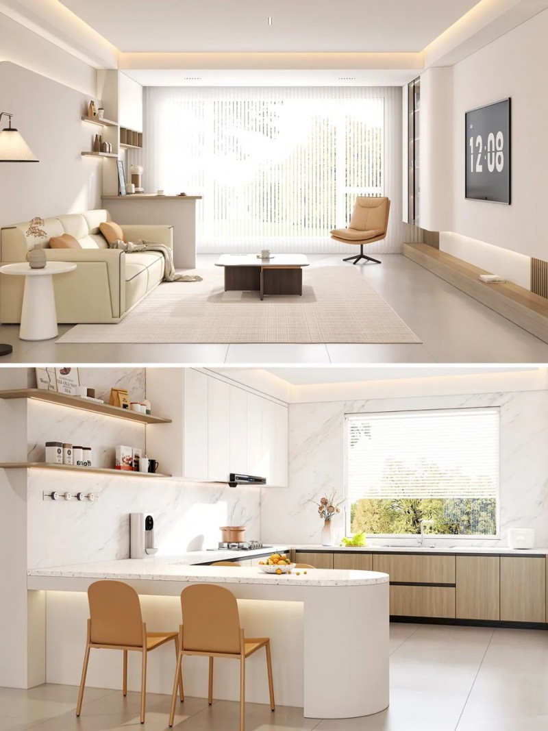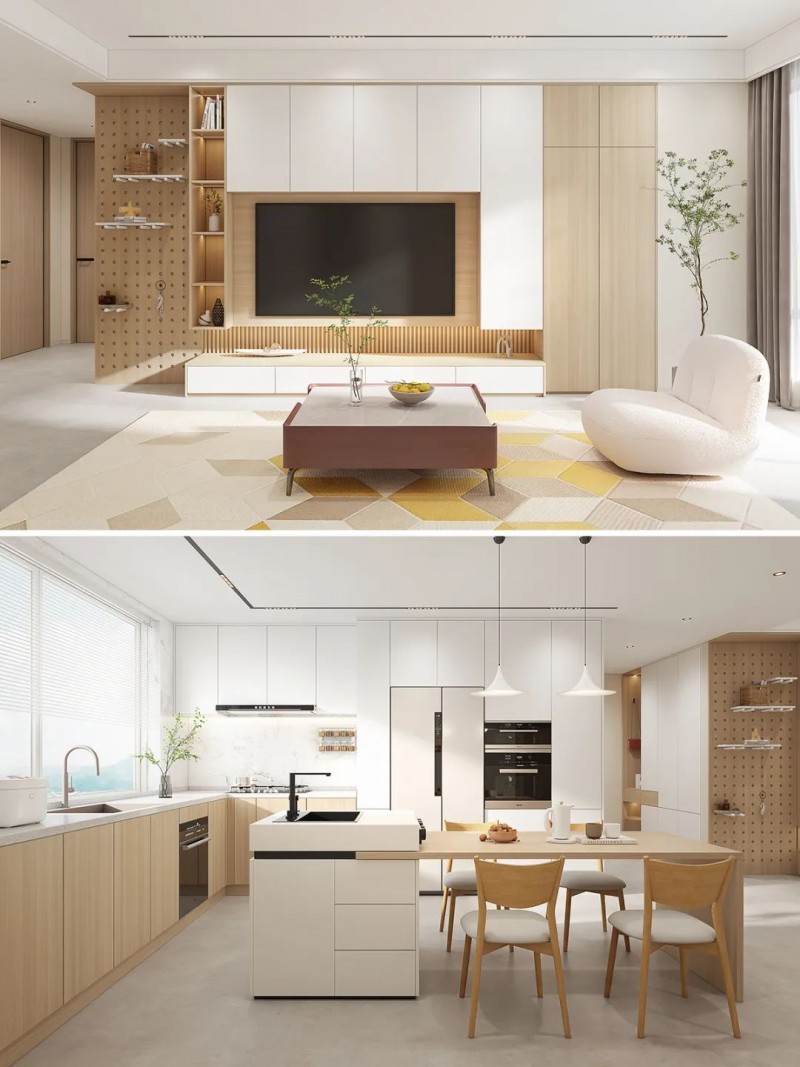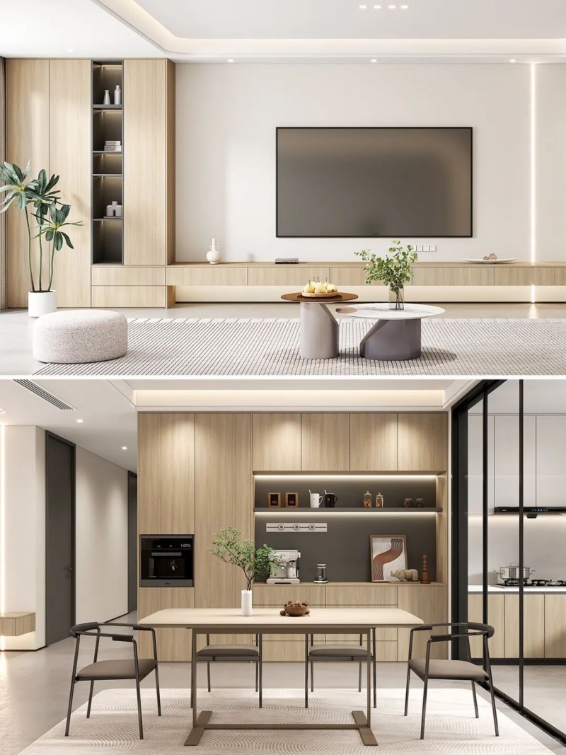 ①开放式布局:客餐厅通常采用开放式布局,打造宽敞明亮的空间感。厨房也可以考虑打通移门做开放式设计,与餐厅之间的过渡更加自然流畅。