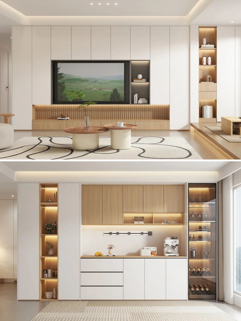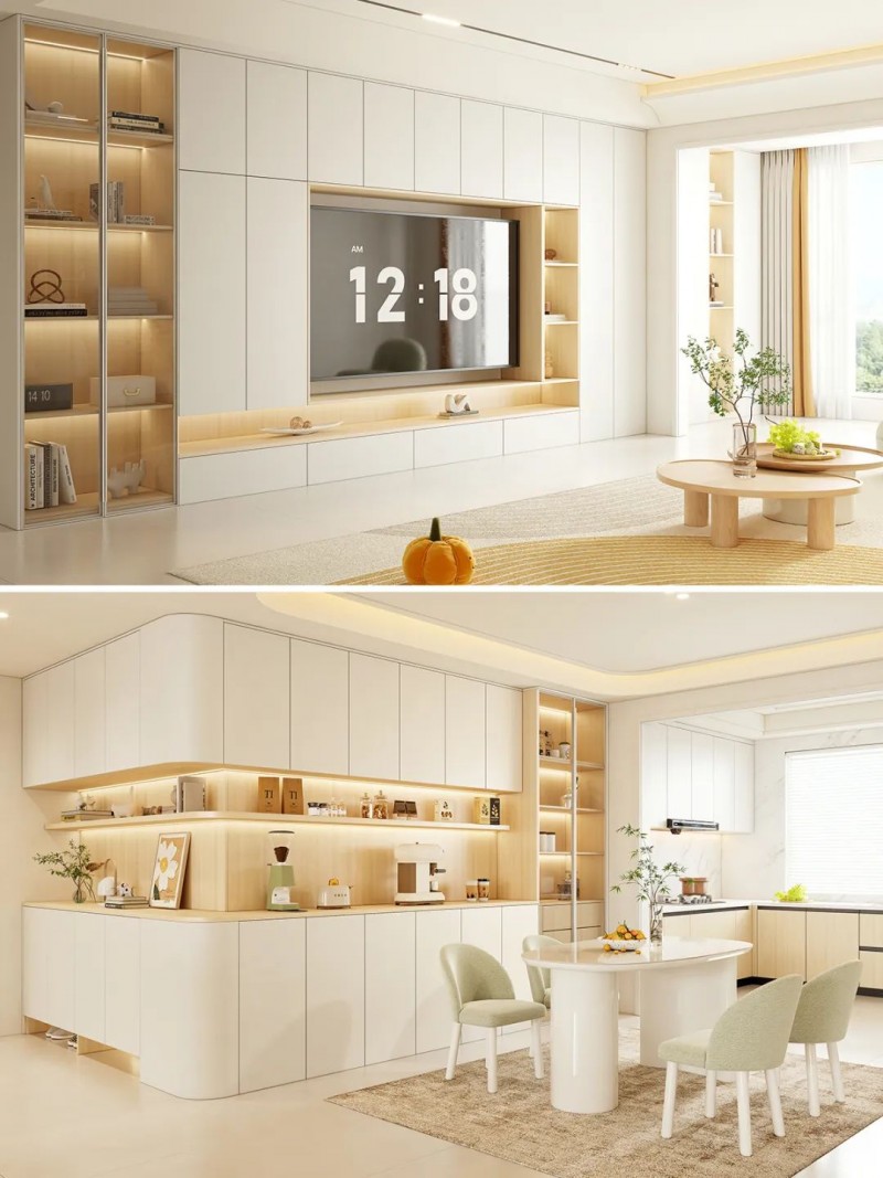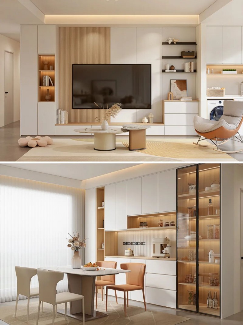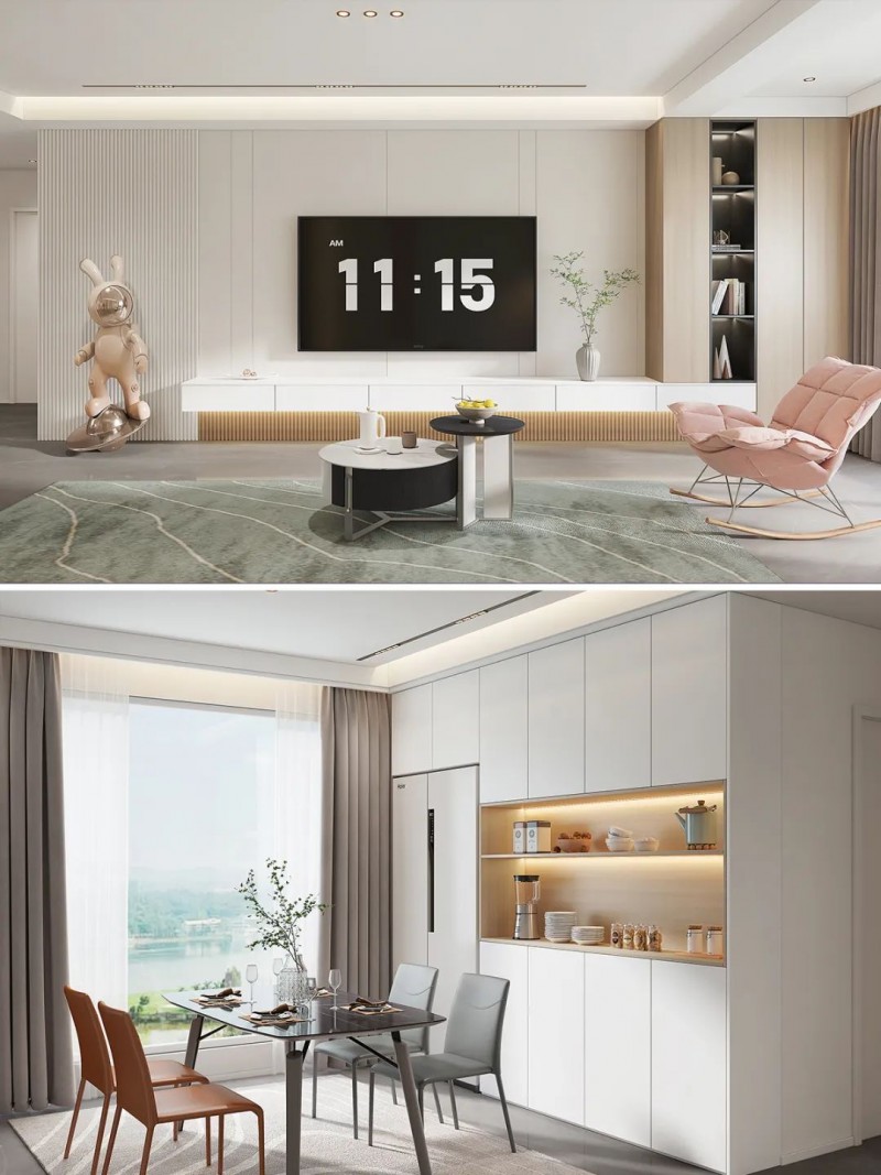 ②内藏灯条:在餐边柜等位置可以设计内藏灯条,营造出温馨的用餐环境。