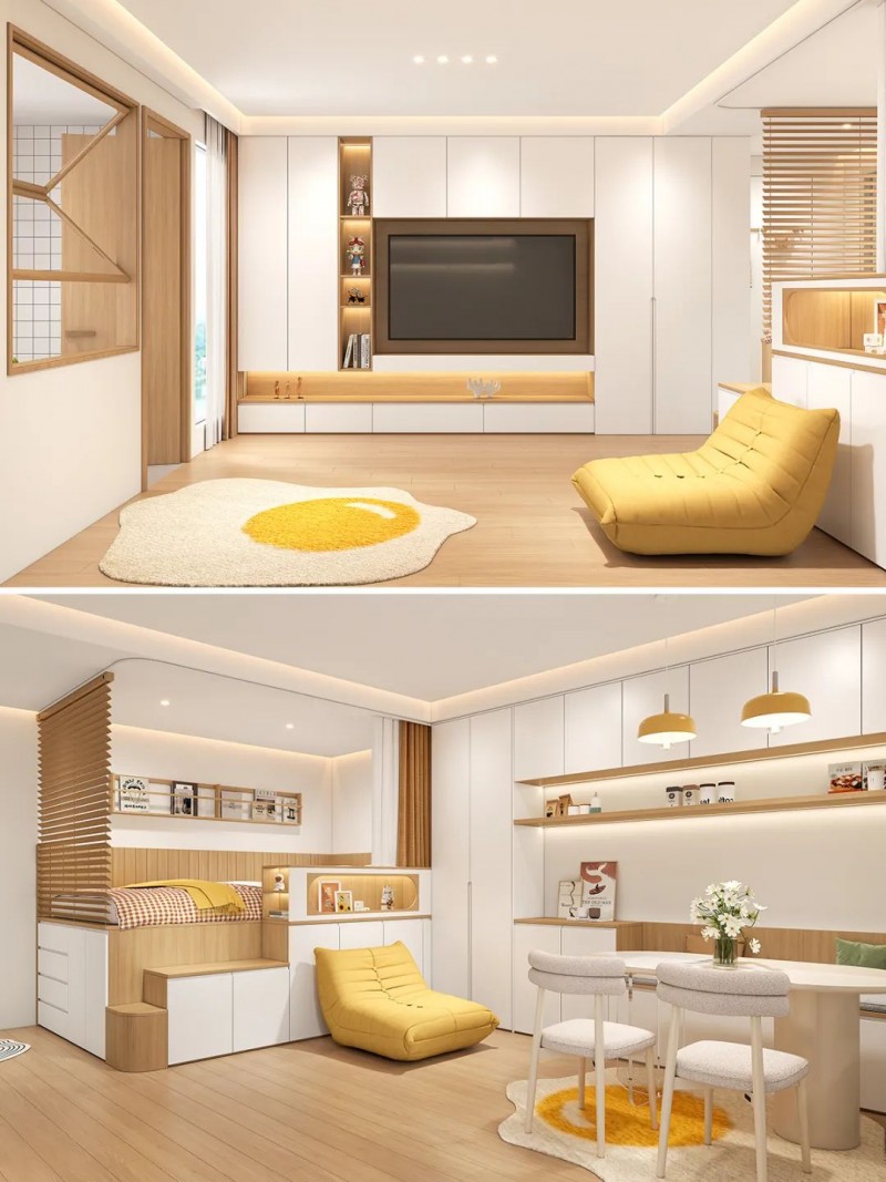 ①墙面与地板:墙面通常选择白色,以营造干净、简洁的氛围。地板则建议选择原木色系,与整体风格相协调,尽量避免使用瓷砖~(木纹砖可以)。