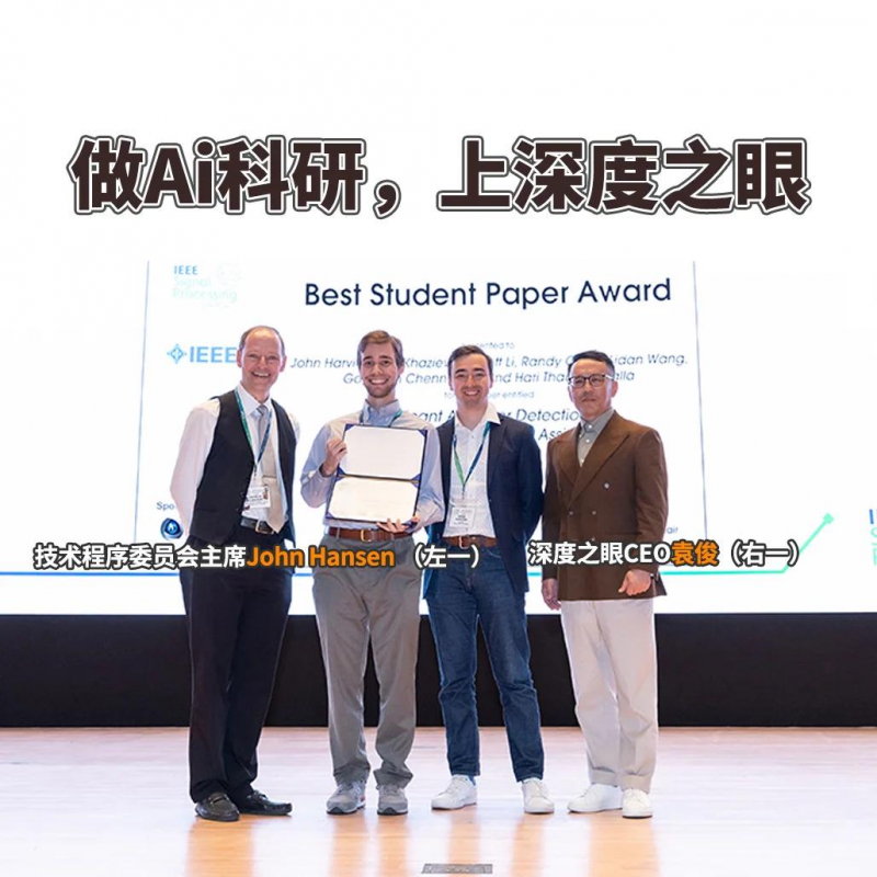 深度之眼创始人袁俊先生,受邀出席领域顶会icassp2024,并亲手为获奖者颁发最佳学生论文奖。