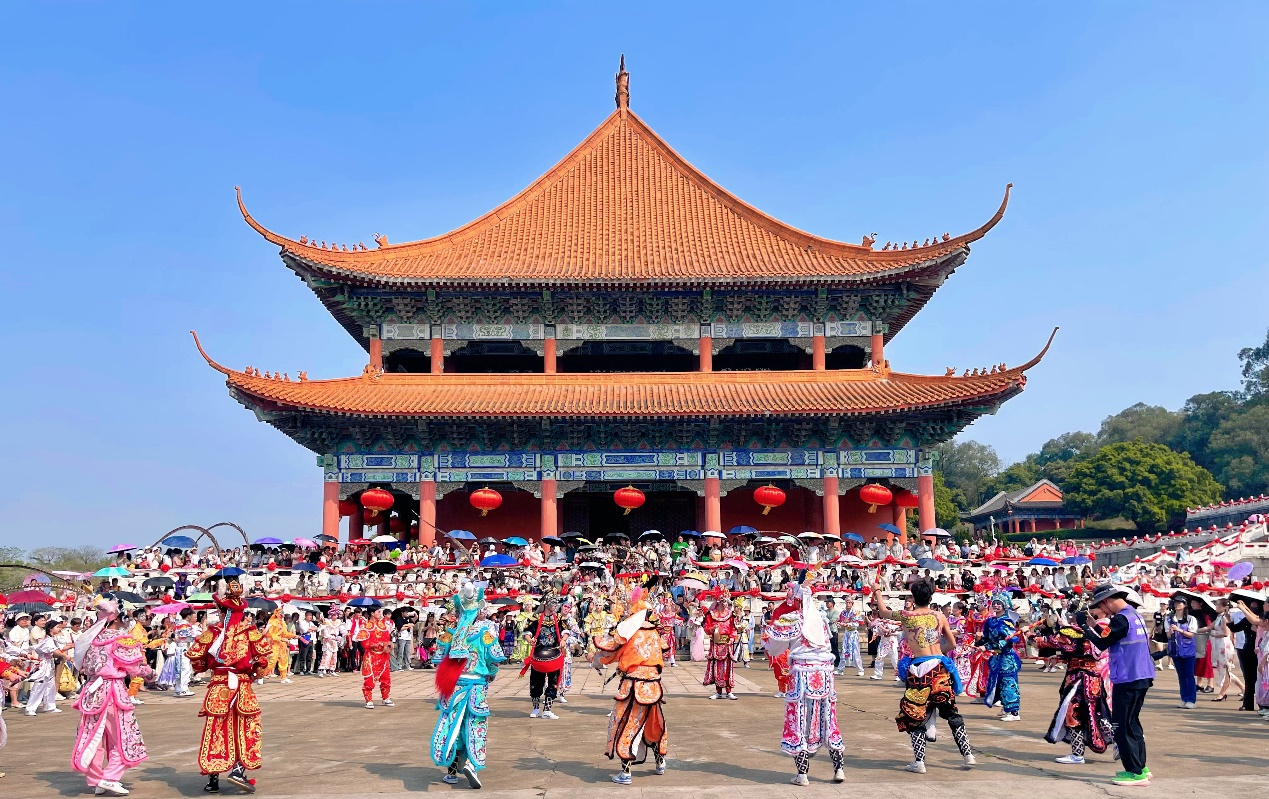 当日上午,鼓点骤起,英歌舞在南海影视城正门拉开帷幕,南海影视城成为非遗文化秀场。