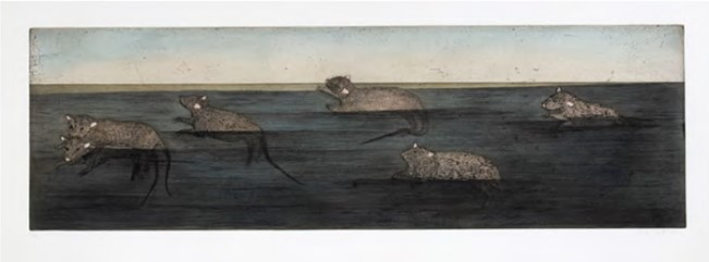 Lelong画廊将在Art Paris 2025展出艺术家Kiki Smith的作品《Carrier》,这幅手工上色雕版画旨在诠释啮齿类动物彼此扶持的故事。(图/ART PARIS)