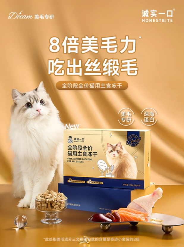 近几个月,国内领先的宠物食品品牌诚实一口持续上新,重磅推出三款功能性冻干产品:Dream宠物零食轻松冻干、Dream宠物零食清新冻干、Dream奇迹小金砖主食美毛冻干。这三款冻干产品由诚实一口联合权威机构研发验证,均以科学配方为核心,针对宠物情绪管理、口腔健康及毛发护理三大需求,为宠物主人提供更专业、更安心的喂养选择,让爱宠享受愉悦的高品质饮食体验。