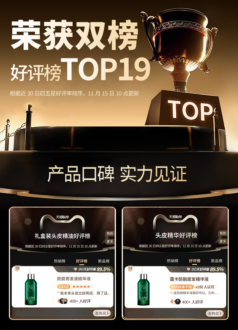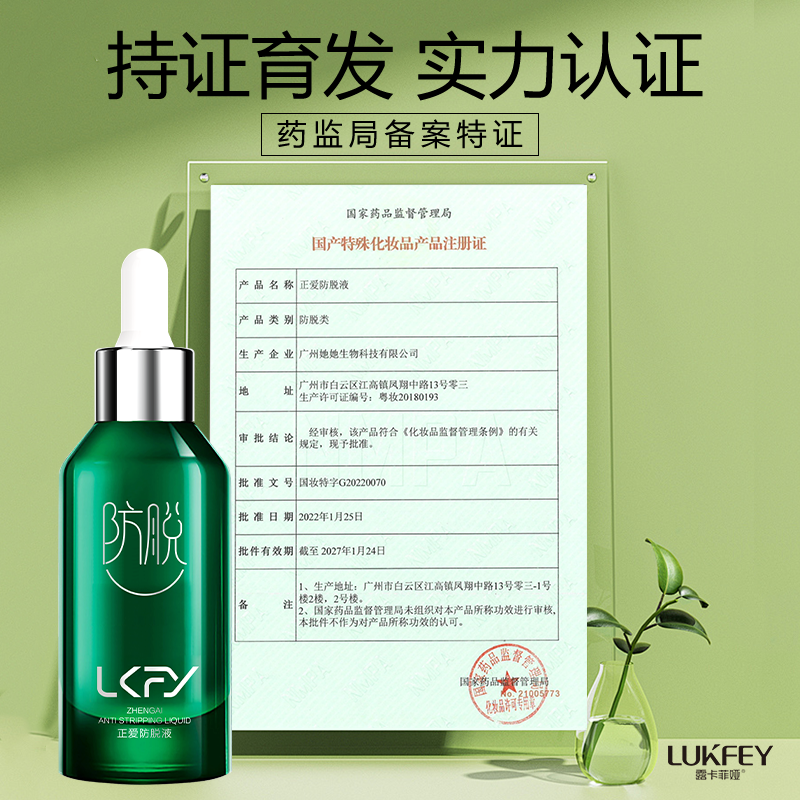 露卡菲娅防脱育发液以多年来积累的医药科技为基础,挖掘天然药用植物精粹,以功效专研力量防脱,国妆特字、品控经过国家检验,拥有“人体功效试验报告”和“国妆特证”两大王牌,以实力为广大消费者在挑选防脱产品时再打一剂强心针。