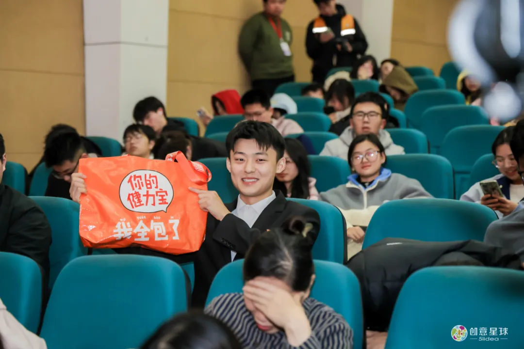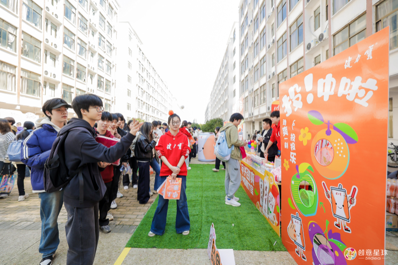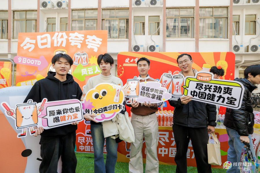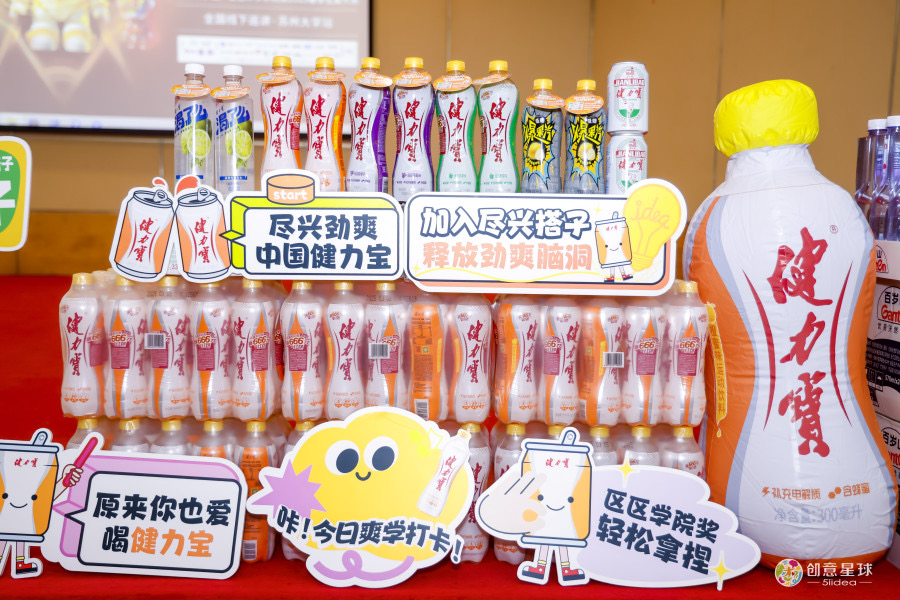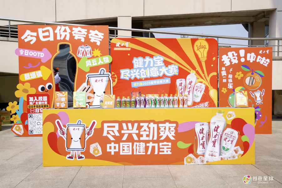 同时,在场外,健力宝也设置了品牌专属互动区,亮眼的橙色主题展位、花样玩法、精美产品和周边礼品,吸引了众多学子排起长龙,驻足打卡,进一步拉进了健力宝与年轻群体的链接,为民族品牌焕新更添青春气息。