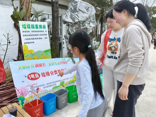 活动当天,10余名身着红马甲的居民志愿者早早来到花田入口处,成为文明赏花的“守护者”。志愿者们分工协作,部分志愿者去往花田手持宣传牌在花田小径旁温馨提醒游客“脚下留情”,耐心讲解保护花田的重要性。为让文明倡导更接地气,活动现场设置了多个互动体验区,分别有“文明赏花我先行”签名墙、垃圾分类投壶挑战、“垃圾换鲜花”环保行动。同时,志愿者们还邀请辖区居民及游客在文明赏花打卡墙处拍照留念,鼓励大家向过路的游客宣传文明赏花的重要性。