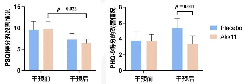 3、AKK11干预后,PSQI睡眠质量指数与PHQ-9抑郁量表评分显著下降,能够明显改善睡眠质量,缓解抑郁倾向,为肥胖人群提供身心双重健康支持。
