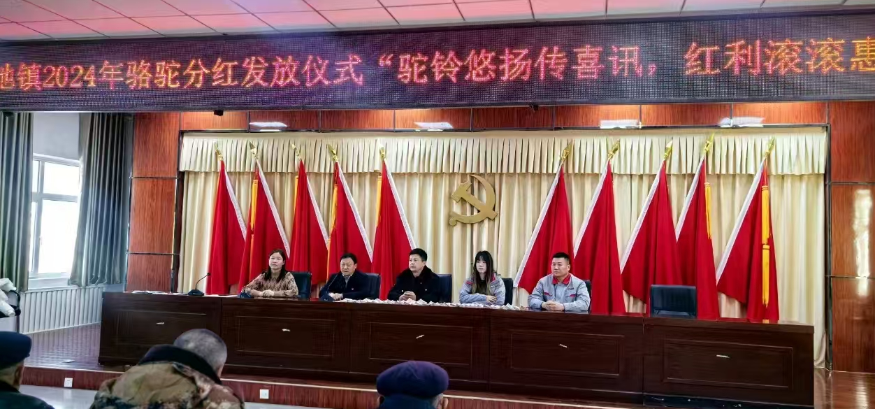 2024年12月21日在盐池镇综合楼中驼生物科技有限公司董事长赵军利连续第六年为贫困牧民发放补贴。