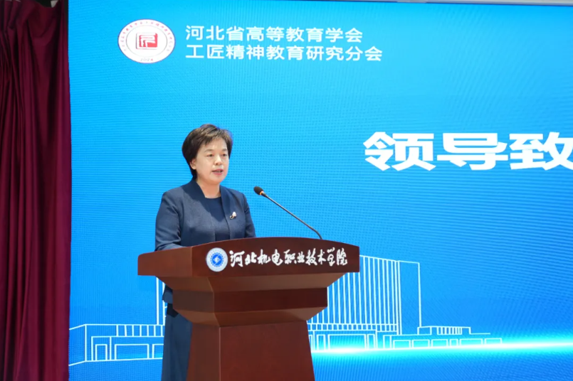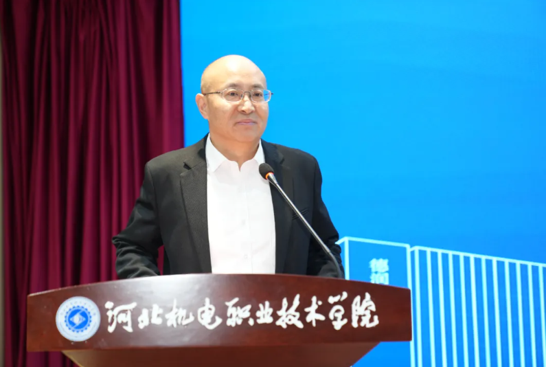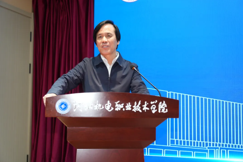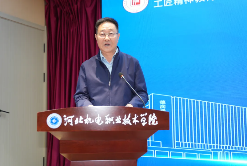 王廷山代表河北省高等教育学会向活动表示祝贺。他指出,此次“劳模工匠进校园”活动不仅是我省高等教育深化产教融合的创新实践,更是弘扬新时代工匠精神的生动课堂。希望河北机电职业技术学院、工匠精神分会能够以此次活动为契机,进一步强化与工会的战略协同,充分利用劳模工匠的宝贵教育资源和榜样力量,在全省高校中推广“劳模工匠进校园”活动,让更多青年学子在劳模故事中坚定信念,在技艺传承中锤炼本领,为工匠精神教育研究做出更多的“机电探索”。