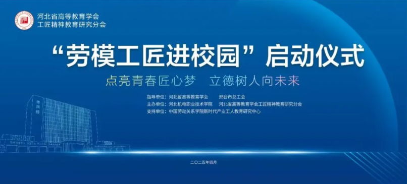 为大力弘扬劳模精神、劳动精神、工匠精神,4月12日下午,劳模工匠邢台行暨“三千工程”高技能人才合作交流活动河北机电职业技术学院分会场“劳模工匠进校园”启动仪式在我院举行。活动由河北省高等教育学会、邢台市总工会指导,河北机电职业技术学院和河北省高教学会工匠精神教育研究分会主办,中国劳动关系学院新时代产业工人教育研究中心支持。