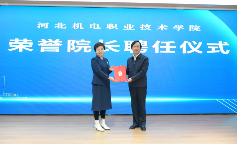 启动仪式上,河北机电职业技术学院聘请高凤林为荣誉院长,王晓凤为高凤林颁发荣誉院长聘书。