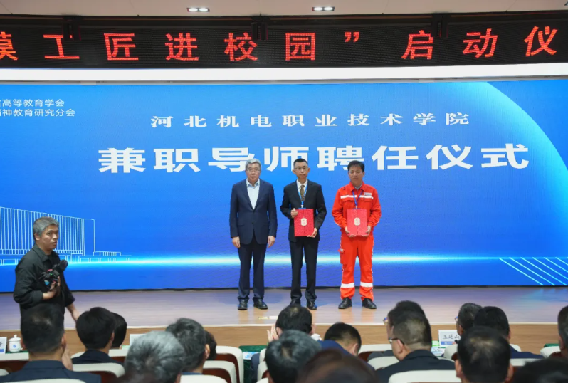 随后,举行了河北机电职业技术学院聘任兼职导师及拜师仪式,学院为刘海林、刘标胤颁发兼职导师聘书,师生代表上台行拜师礼。