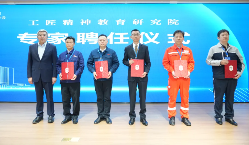 河北机电职业技术学院副院长、河北省高等教育学会工匠精神教育研究分会副理事长赵晓东为张德勇、刘标胤、刘海林、于伟、张海波颁发工匠精神教育研究院专家聘书。