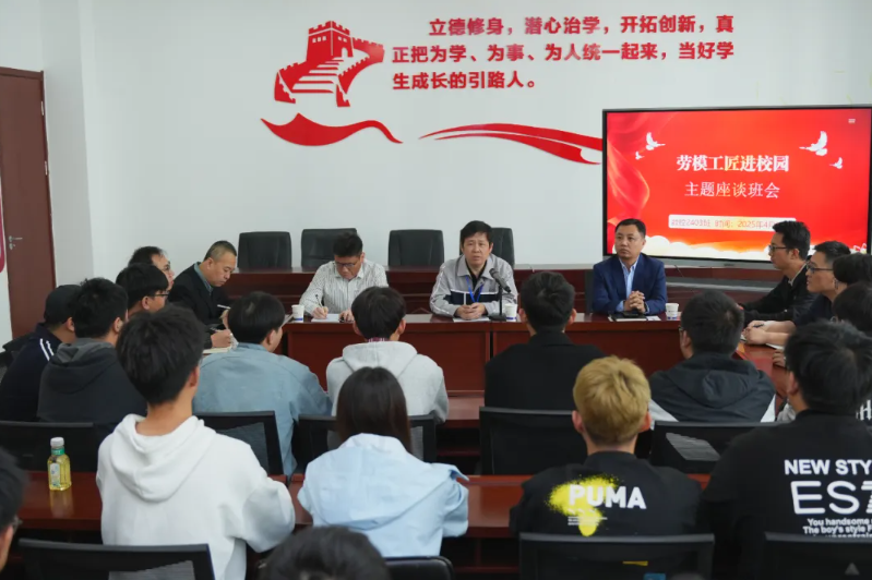 参加会议的劳模工匠代表张海波、刘标胤、于伟、刘海林、张德勇深入河北机电职业技术学院各系部开展交流活动,为学生上主题班会。五位劳模工匠通过分享他们的奋斗故事和成才经历,教育引导青年学子理解“劳模精神、劳动精神、工匠精神”的深刻内涵,树立成为“劳模工匠”的奋斗目标,走技能成才、技能报国之路。活动中,学生们踊跃提问,就专业学习和职业发展方面的困惑向劳模工匠寻求建议、汲取力量。