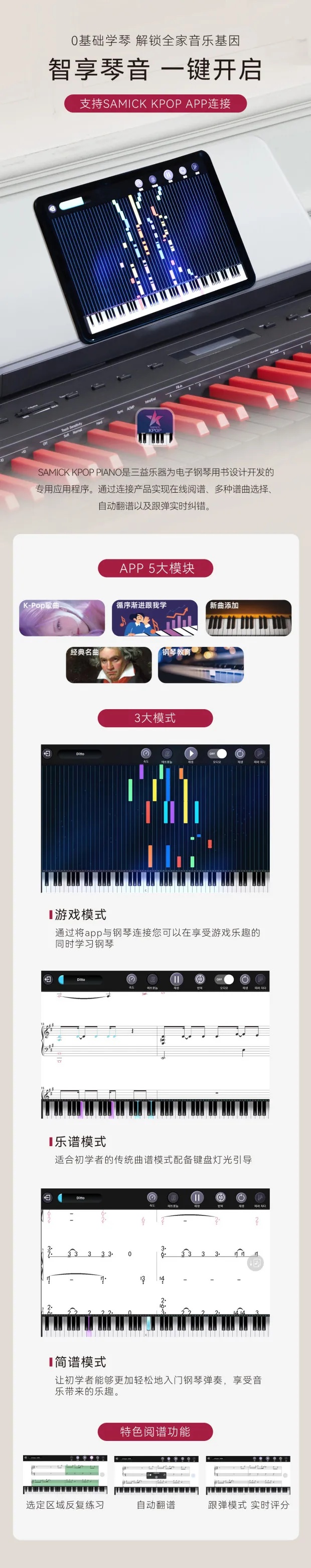 SP-X88&Kpop piano App让学习过程变得轻松愉悦。它提供了视觉和感官的双重体验,无论你是水平的钢琴演奏者,