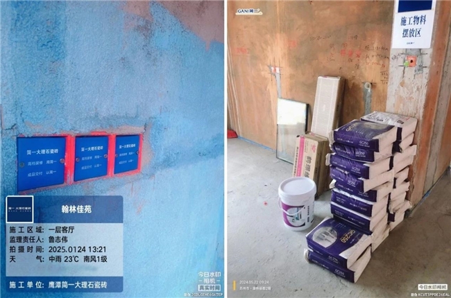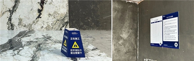 传统工地最令人头疼的莫过于材料的无序堆放——水泥袋随意丢弃、瓷砖随意摆放、工具与垃圾混杂。而在简一工地,这种混乱场景被彻底改变。所有材料按功能分区码放:瓷砖按空间分类堆放,辅料专区、工具专区一目了然,每个施工区域都有清晰的指示牌,明确标注了区域功能、施工进度及负责人信息。材料按照功能分区整齐码放,既方便取用又避免了混乱。施工工具则统一放置在指定区域内,确保施工过程中的安全与效率。这种井然有序的管理方式,不仅提升了施工效率,更让业主对施工进度和质量一目了然,减少了沟通成本。
