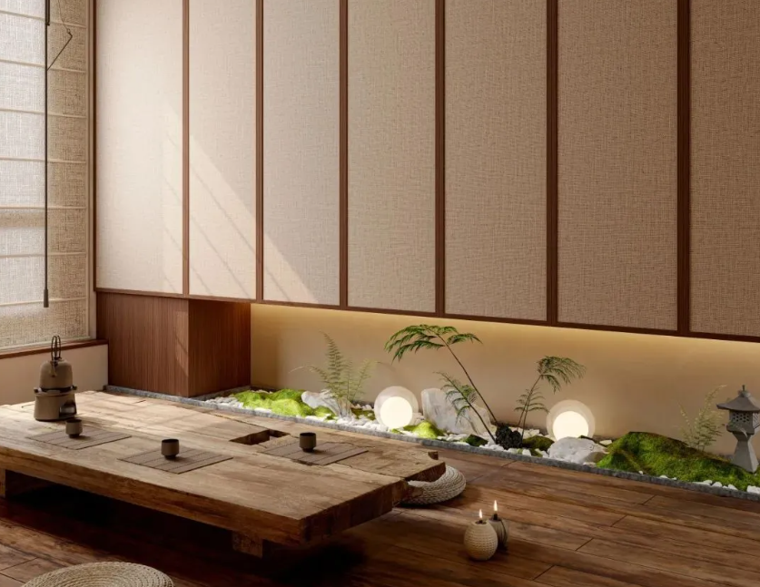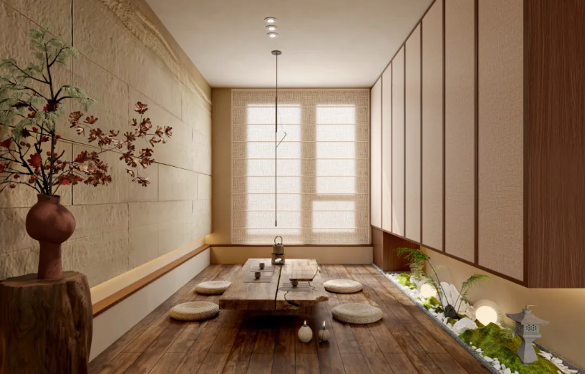 推拉门侧即冥想区,静坐于此放松身心,感受茶香与自然的馥郁,卸去一日奔波的劳累。