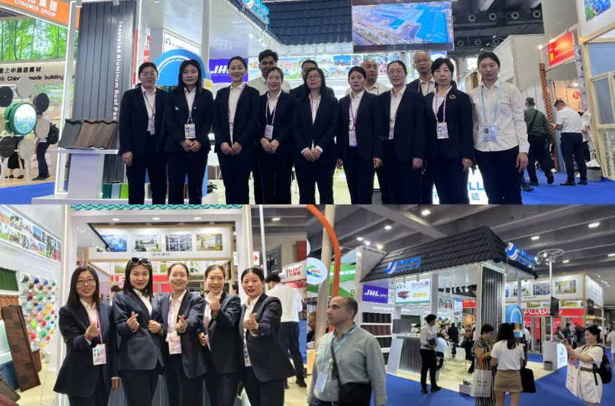 此次金湖彩铝集团的参展产品兼具功能性与美观性,除了原本的彩涂铝卷、彩石金属瓦、铝塑板看家产品,最新推出的三象长城隔热铝瓦凭借优异的隔热性能和耐候性,受到海内外客商的一致好评。这种适用于高端建筑屋面的铝瓦,将环保理念与时尚设计结合,满足个性化建筑需求,为屋面建材的选择提供了更多可能性,进一步巩固了金湖彩铝集团在国际市场的竞争力。