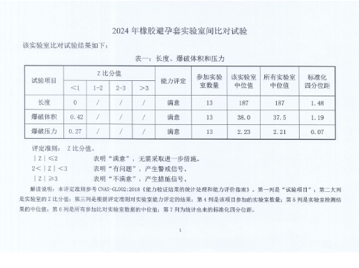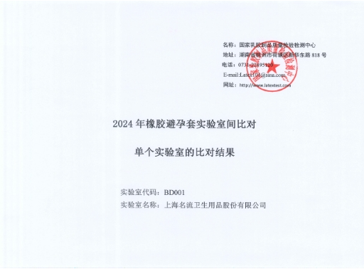 2024年,公司参加国家乳胶制品质量监督检验中心举办的实验室间比对试验,与国内多家同行业生产、独立检测机构进行了试验室比对,上海名流实验室的比对结果在各项检测能力评定中,均为最好的等级。