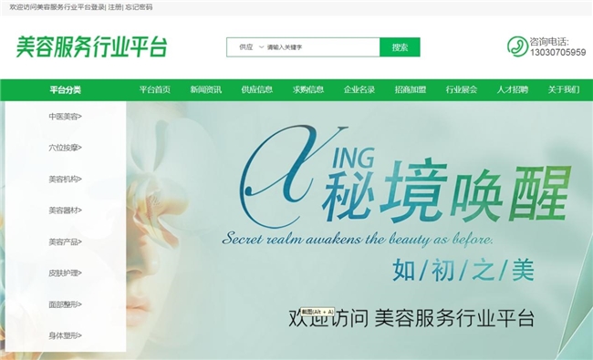 这次打造的美容服务行业平台,在资源整合、信息透明、个性化服务、市场拓展、政策支持与市场需求等方面具有显著优势,并在推动行业标准化与专业化、促进技术创新与交流、提升消费者健康意识以及创造就业机会与经济贡献方面发挥着重要作用。美容服务行业平台涵盖中医美容、穴位按摩、美容机构、美容器材、美容产品、皮肤护理、面部整形和身体塑形等平台分类,拥有新闻资讯、供应信息、求购信息、企业名录、招商加盟、行业展会和人才招聘等功能模块,通过平台的资源整合,商家和服务者可以实现资源共享,提高服务效率,降低成本。利用大数据和人工智能技术,美容服务行业平台为行业带来了新的发展机遇,推动了新型美容仪器、高科技护肤产品和智能化健康管理设备等创新产品的研发和推广,这不仅提升了行业的科技含金量,还为消费者提供了更加便捷、高效、个性化的服务体验。平台欢迎任何体量的商家和服务者加入平台,对于小型美容商家而言,美容服务行业平台提供了一个展示自己、拓展市场、建立品牌的渠道,通过平台,商家可以突破地域限制,触达更广泛的消费者群体,提升品牌知名度,促进了品牌与消费者之间的互动和信任建立。