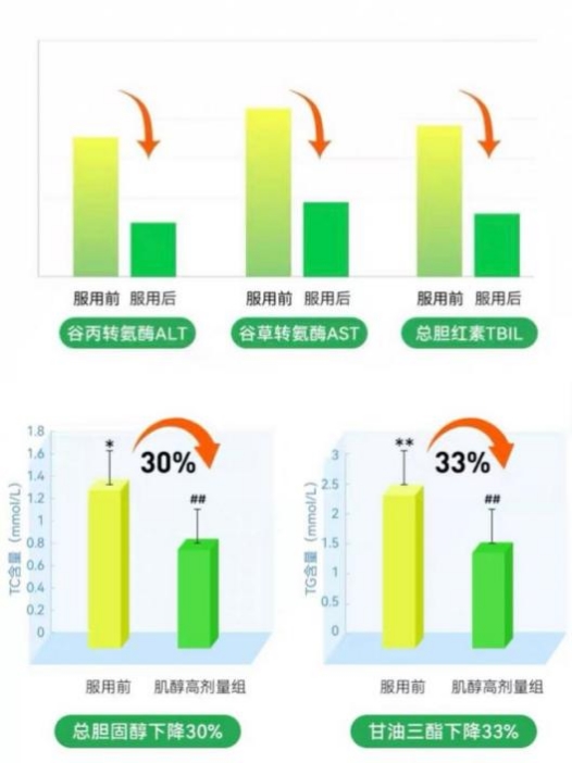 谷丙转氨酶、谷草转氨酶、总胆红素、总胆固醇、甘油三酯都下降。)