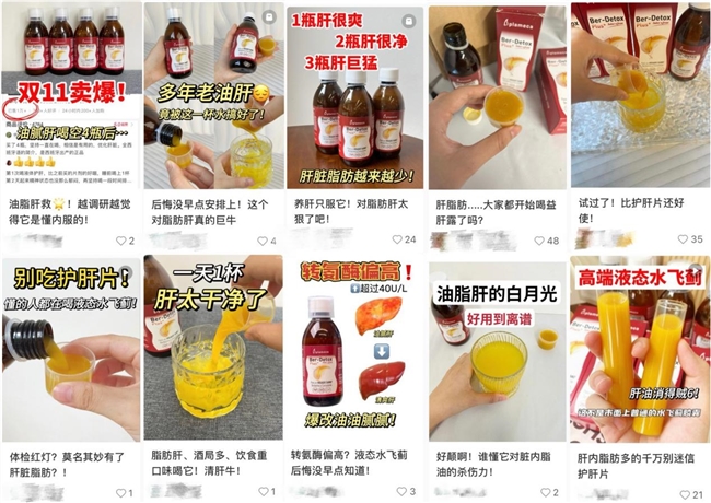 (小红书等社交媒体平台上,不少年轻人购买波利王益肝露)