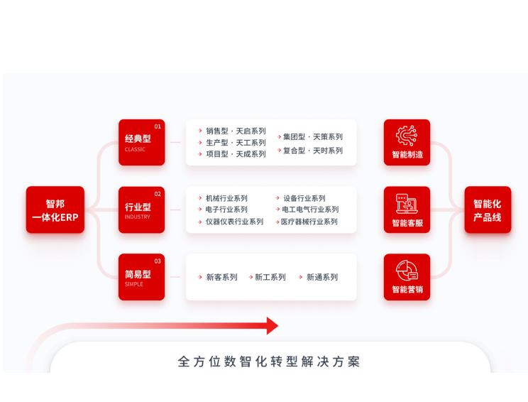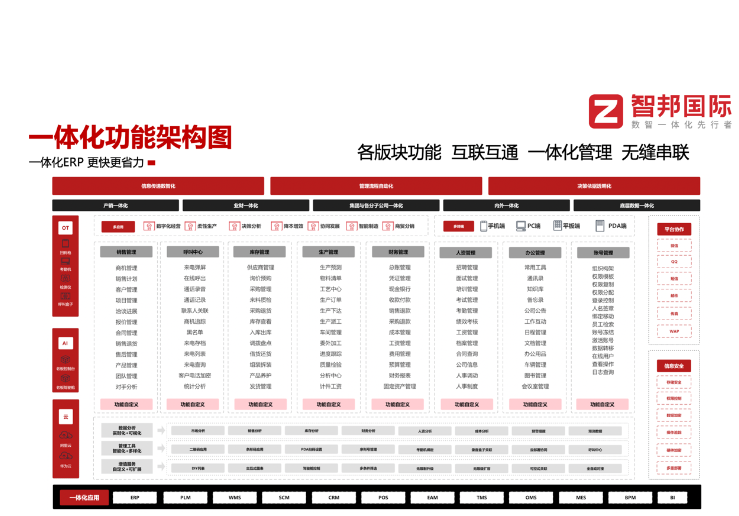 作为ERP行业的领军企业,智邦国际自2003年创立以来,始终致力于为企业提供全面、高效、智能的管理解决方案。随着数字化浪潮汹涌而来,智邦国际极具前瞻性地将数字化与企业管理相结合,并首倡了“企业一体化”管理思想。在“企业一体化”管理思想的指引下,智邦国际针对集团型企业的管理痛点,精心打造了新一代“集团版一体化ERP”。新一代“集团版一体化ERP”不仅继承了智邦国际一贯的高品质和创新精神,更在功能和性能上实现了全面升级,为集团型企业提供了更加全面、高效、智能的管理解决方案。