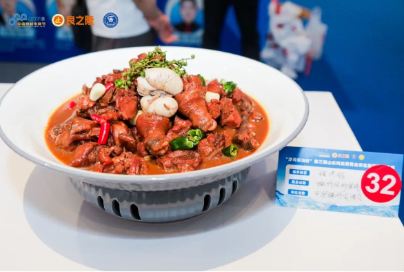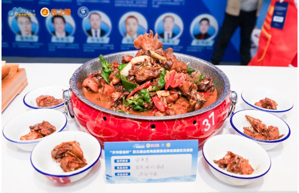在良之隆、青岛汉唐、青岛泽飞、东港东孚、马鞍山创源、味来央厨、青岛康大、广东八合里、汕头万壮等企业展台前,香虾、鲍鱼、鲅鱼水饺、麻辣小海鲜、蟹黄、蟹肉、锅包肉、干炸里脊、牛肉、牛肉丸等优质食材,吸引了众多观众到场品鉴和咨询合作事宜。