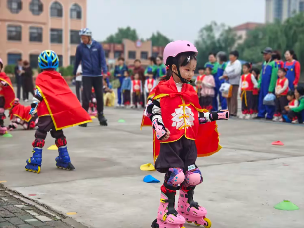 轮滑小将踏风来,宝贝们脚踩“风火轮”,如哪吒般灵活穿梭、滑行一气呵成,尖叫声此起彼伏。
