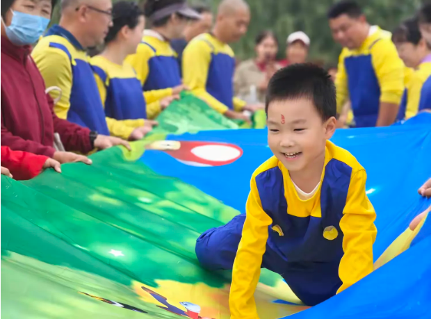 家长化身“守护使者”,与孩子共同开启一场趣味横生的冒险之旅。在家长撑起的一片蓝天下,小哪吒们时而灵巧地冲刺,时而快速地穿梭。