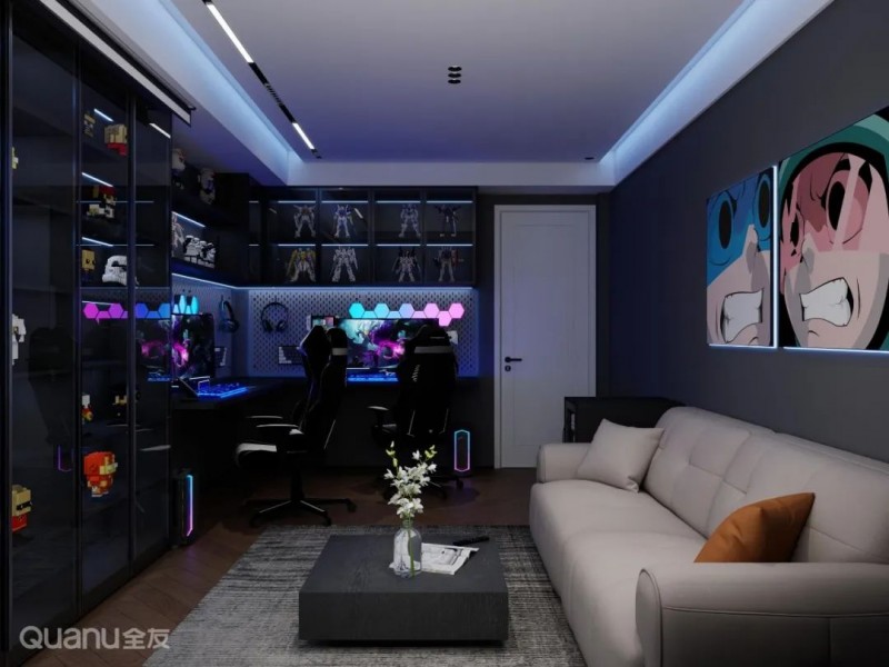 根据业主实际需求,可将客卧做多功能房设计,采用“衣柜+书桌”、“书桌+吊柜”等组合形式,灵活打造书房、衣帽间、电竞室等功能区。若需保留睡眠功能,用折叠沙发、墨菲床代替传统床即可。