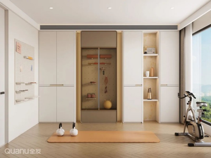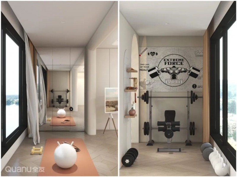 ②多采用折叠型或多功能健身器械,将健身区灵活融入客厅、阳台、走廊等日常活动空间,建立运动习惯,提升区域利用率。