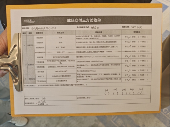 简一深知,装修验收是保障品质的关键环节。因此,简一将工地验收打造成了“毫米级考场”。在验收标准上,简一以1mm为单位,对填缝宽度、接缝、平整度、垂直度、阴阳角偏差等进行严格检测,每一项都高于行业一级标准。在验收流程上,简一实行“双重验收”机制。首先由简一瓷砖管家进行内部细致验收,他们凭借专业眼光和丰富经验,对每一个细节严格把关。随后,邀请业主或监理进行外部验收,让业主能够亲身参与到验收过程中,亲眼见证自己家的品质。只有当所有验收项目都顺利通过,才算过关。业主全程无需操心,只需在最后到现场签字确认,轻松享受品质交付。