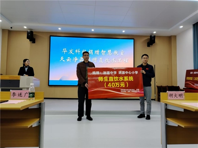 天云净品CEO李冉代表天云净品参加本次活动,他表示公司将一如既往地履行社会责任、支持教育事业发展,并现场向浰源中学及浰源中心小学捐赠了价值40万元的直饮水设备。这些直饮水设备将极大优化师生们的日常饮水质量,降低因水质不合格对身体造成的危害。