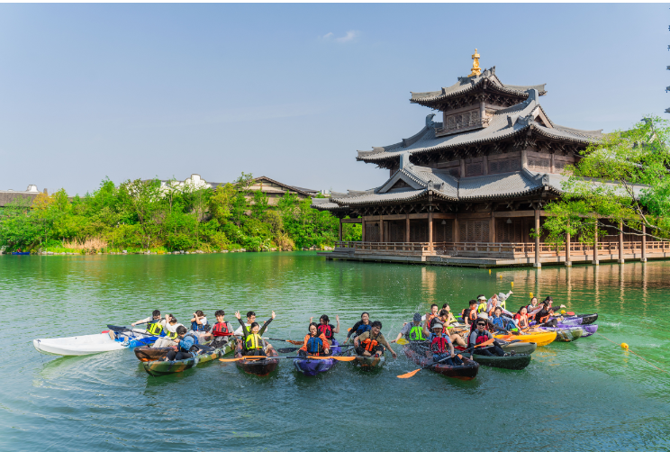 暑期亲子游需求井喷,市场呼唤超越浅层娱乐的沉浸式共游体验。濮院时尚古镇紧扣“水尚生活”主题,深挖“水”的多元互动潜能,构建出“水、陆、空”三维立体玩水场景——水上,桨板竞速、皮划艇悠游、透明船探秘、冲浪板踏浪、摇橹船观景5大亲水玩法,让大小朋友在碧波间尽享协作与挑战的乐趣;陆上,古镇棋盘街巷化身“街巷水仗”游乐场,挑战古人“背水一战”穿越时空带来玩水新场景,“踩水濮院摇”伴随潮流带来“音乐+”新玩法,随时随地“声入人心”的唱K体验则推动新消费;半空,“落日泳池”集结音乐派对、下午茶体验与趣味浮板运动,带来多维度的度假之旅。
