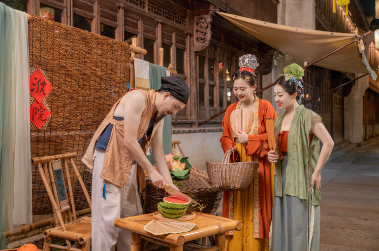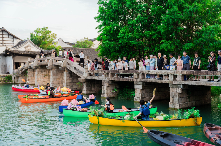 通过水这一天然媒介,景区不仅将运动竞技、文化浸润、艺术表达、品质休闲巧妙融合,更以动静结合的消费场景“点燃”文旅消费新活力。以水为T台秀场,8只“多巴胺色系”时尚感十足的主题船只满载鲜花、时令瓜果、冰镇饮品、匠人手作等,不仅形成一场“流动的展览”,更带来流动的、开放的、社交化的“快闪式体验消费”;漫游古镇街巷,7处松弛感与精致感兼具的茶饮场域,满足着从怀旧寻根到文化猎奇、从快节奏补给到慢生活沉浸的全域消费需求——水雾缭绕间的“水席冰茶”,街头巷尾“一元一碗”的老底子情怀,仪式感拉满的“宋韵点茶”,评书声中的阵阵茶香……这种锚定的、深度的、文化性的“在地消费”,为不少游客带来情绪价值,游客与目的地之间的情感连接度也因此显著提升。