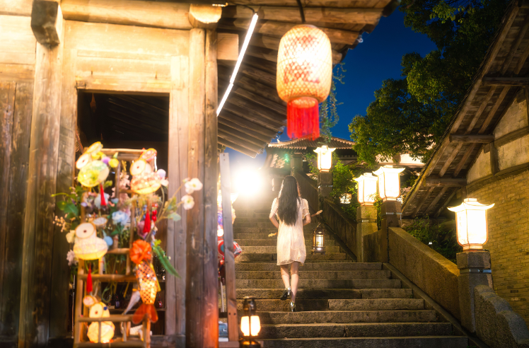 华灯初上,游客可以在打更桥灯笼铺亲手制作一盏花灯,参与“提灯走桥”传统民俗活动,承载“走过的桥越多,来日越顺遂平安”的美好心愿。而每晚20:00开启"星河摇橹夜游",则将夜间演绎玩出“新花样”——长达千米的河道化身为“流动的秀场”,游客可以坐上“明星同款”红毯游船,360°移动式观演,围观散落在游船全域的14处演绎——水袖舞、笛奏和鸣、小提琴之恋、摩登时代……形成“处处有戏、步步生景”的文旅新体验。